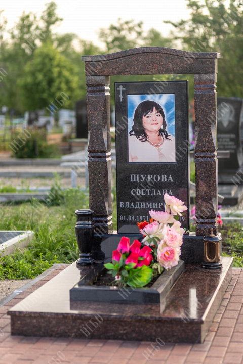 Памятник арка выполнен в классических темных оттенках, имеет открытое надгробие, лампаду и вазу у основания стелы. Монумент в виде арки придает ритуальному изделию эксклюзивность, такой памятник всегда обратит на себя внимание. Арочные своды, обрамляющие стелу, символизируют небесный свод. Такая форма памятника создаст атмосферу безмятежности и поможет достойно выразить дань уважения погребенному. Размер и форма памятника проработаны специалистами с учетом нагрузки и эстетического восприятия ритуального изделия. Такой подход исключает возможные искажения и деформации ритуального изделия.