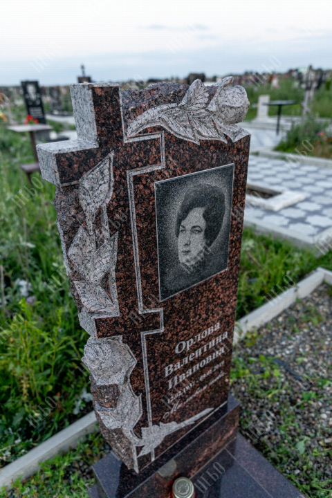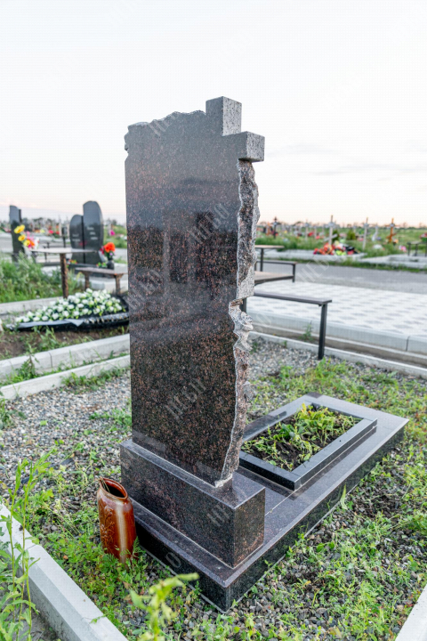 Памятник фрезерный с крестом, открытым надгробием и фигурной стелой. Использование фрезеровки в изготовлении ритуальных изделий гарантирует высочайшую точность исполнения запланированного дизайна. С помощью этой технологии в камне высекаются углубления по заданным макетам, придавая памятнику объем, позволяя комбинировать различные элементы и создавать сложные фигуры. На фрезерованном памятнике удачно контрастируют цвета и в солнечную погоду играют тени от объемных деталей. Открытое надгробие позволит в дальнейшем использовать пространство на его поверхности для высадки цветов или других растений. Размеры стелы и надгробия соответствуют заданным нормам при имеющейся нагрузке и исключают деформации изделия со временем.