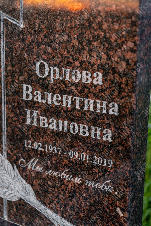 Памятник фрезерный с крестом, открытым надгробием и фигурной стелой, заказать в Луховицах.